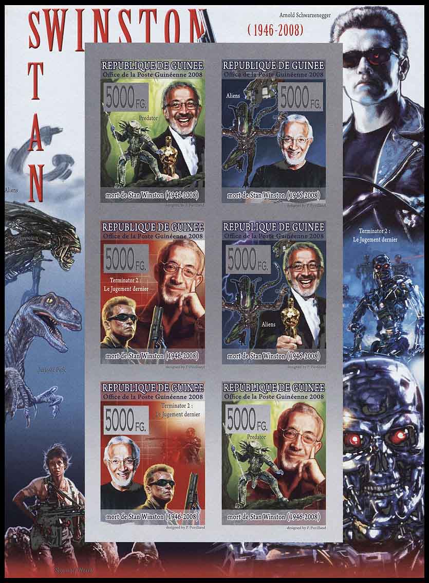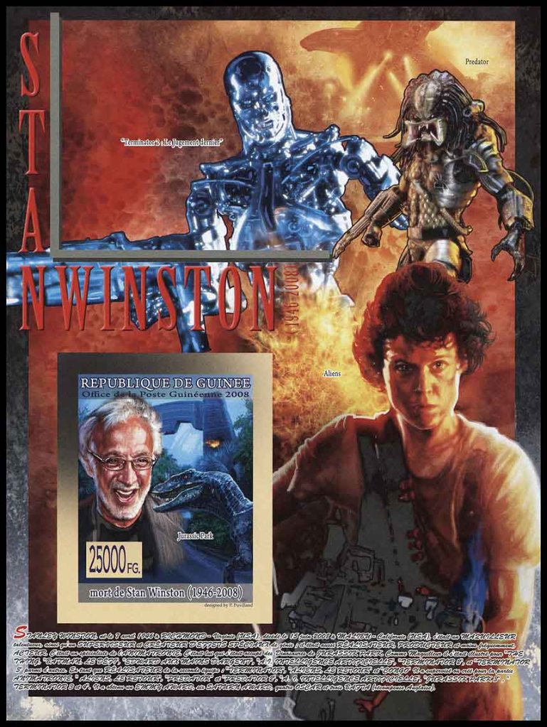 На марках можно встретить и других зловещих пришельцев, а также смертельно опасных инопланетян. Так, на марках и блоке Гвинеи 2008 года (Michel № 5771—5777, block № 1562), приуроченных к кончине голливудского мастера спецэффектов Стэнли Уинстона (1946—2008), помимо прочего изображены свирепые инопланетяне из американских фильмов «Хищник» и «Чужие».