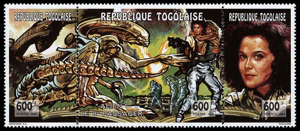 Сцены из фильмов «Чужие» и «Чужие-2» также можно увидеть на марках и блоке Того 1994 года (Michel № 2219—2221, block № 372).