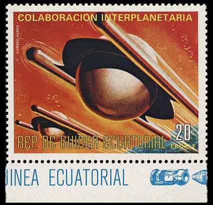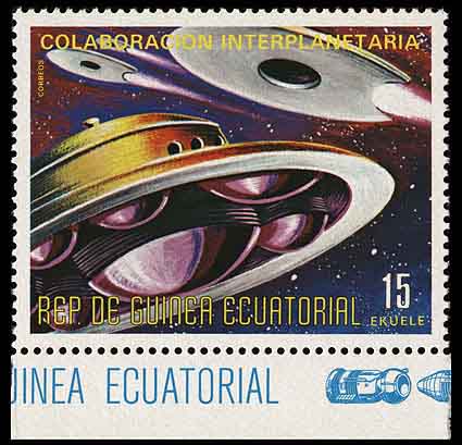 Но кровожадны не все «летающие тарелки» и инопланетяне. Любопытны марки Экваториальной Гвинеи, выпущенные в 1975 году в серии, посвящённой советским и американским исследованиям космоса. Если судить по надписи, на двух марках с НЛО (Michel № 595, 596) изображено «межпланетное сотрудничество». Художник уверен, что люди смогут найти общий язык с пришельцами и наши цивилизации будут сотрудничать друг с другом. Подробнее об истории появления круглых инопланетных кораблей с «лыжами» на марке Экваториальной Гвинеи можно узнать в заметке «Межпланетное сафари».