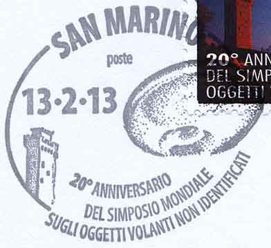 13 февраля 2013 года в Сан-Марино выпущена ещё одна марка, посвящённая НЛО, а именно предстоящему двадцатому Всемирному симпозиуму по уфологии.