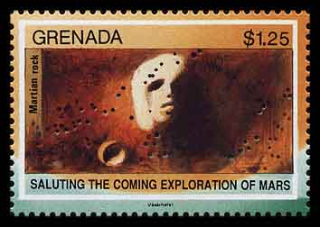 На рисунках марки и блока Гренады (Michel № 2294, block № 286) художник Дьюла Виширей изобразил «лицо на Марсе». На марке надпись: «Марсианская скала». Забавная деталь: художник принял помехи на фотографии за мелкие кратеры и придал им объём.