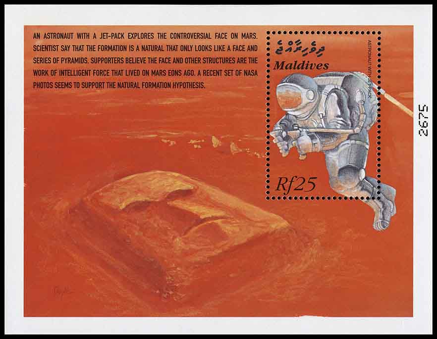 Впоследствии «лицо на Марсе» появилось на блоке Мальдив 2000 года (Michel № 441), посвящённом будущему исследованию Красной планеты. Рисунок дополняет пояснительный текст: