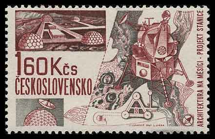 Подземный город на блоке Шарджи не был первым лунным архитектурным сооружением, появившимся на почтовых миниатюрах. Например, изображение лунной базы будущего присутствует на марке Чехословакии 1967 года (Michel № 1693). В верхнем левом углу марки показан общий вид станции, внизу в центре — её чертёж. Помимо этого, на марке изображён лунный модуль, с помощью которого через два года, в 1969, астронавты высадились на Луну.