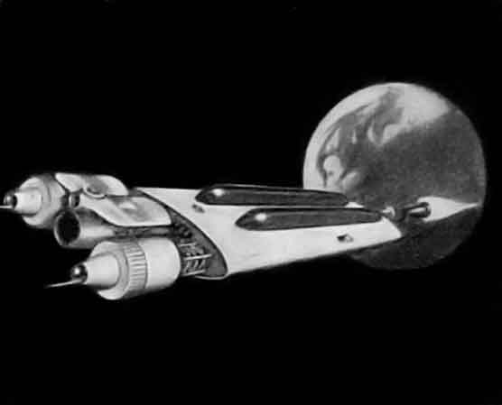 Подобный лунный космический корабль изображён на рисунке Скарфо к докладу Пейджа. Большую часть пути до Луны двигатели корабля будут работать. Предполагалось, что на космических кораблях будут использоваться ядерные двигательные установки «NERVA». При подлёте к Луне корабль развернётся на 180 градусов для торможения.