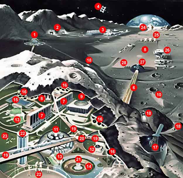 На рисунке лунного города много объектов, поэтому я их пронумеровал.