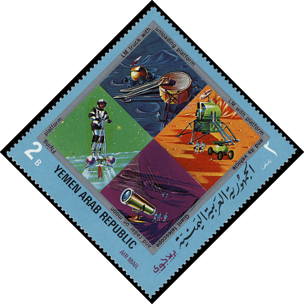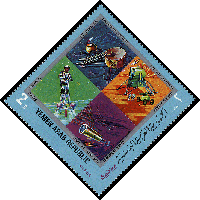 Иллюстрация модульной станции тоже выполнена Скарфо. В 1970 году её изображение появилось на марках Йеменской Арабской Республики (Michel № 1176, 1183), выпущенных в серии «Космос 70. Межпланетные станции».