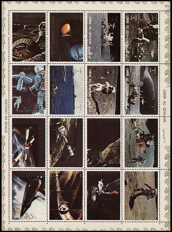 На марке Умм-аль-Кувейна рисунок зеркально перевёрнут. Почтовая миниатюра выпущена в марочных листах вместе с другими марками и купонами серии «История космоса», в зубцовом и беззубцовом вариантах. Кроме того, выпущены марочные листы уменьшенного формата и люкс-блоки.