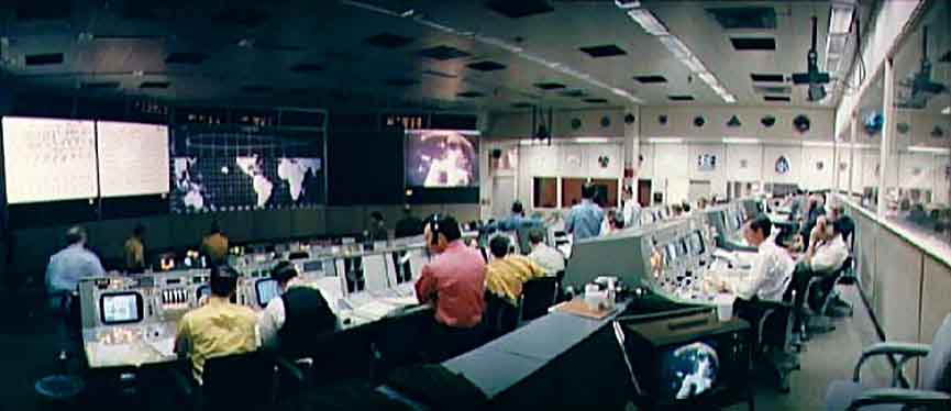 На марке блока воспроизведена фотография из американского Центра управления полётами в Хьюстоне. Фотография сделана 31 января 1971 года, во время первой цветной передачи с командного модуля «Аполлон-14».