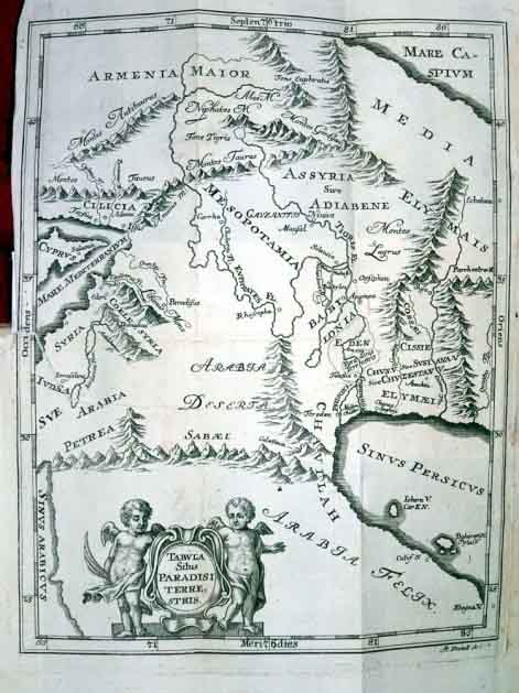 Бережно храню томик изысканий епископа Пьера Юэ (Pierre Huet) под названием «Два комментария о месте Рая земного и плаваниях Соломона» (Грац 1734). Там даже имеется симпатичная «карта места земного Рая», помещавшая легендарный сад посередине между Вавилоном и берегом Персидского залива. Другой трофей из Граца, фолиант авторитетного богослова Августина Калме («Подробный комментарий к каждой книге Ветхого и Нового Заветов», т. 1, Грац, 1734), содержит большую карту, где место Рая указано вокруг горы Арарат. В библиотеке имеется и первое издание книги с говорящим названием «Рай найден: колыбель человеческой расы на Северном полюсе» (Бостон 1885) президента Бостонского университета Вильяма Уоррена.
