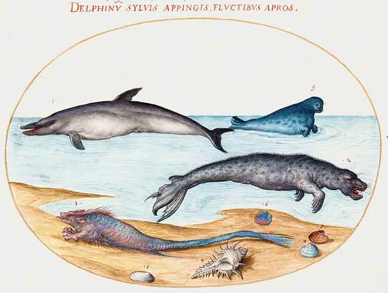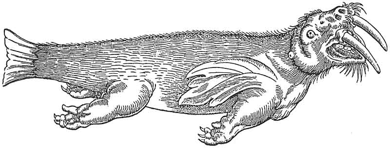 Но, если бросить взгляд на потрясающе точные рисунки дельфина и тюленей, все же трудно поверить, чтобы художник НАСТОЛЬКО ошибся, поместив «в одном кадре» с ними совершенно фантастического монстра, хотя некоторые искажения он допустить, конечно, мог. Например, изобразив ласты более лапообразными, увеличив «змеистость» хвоста…