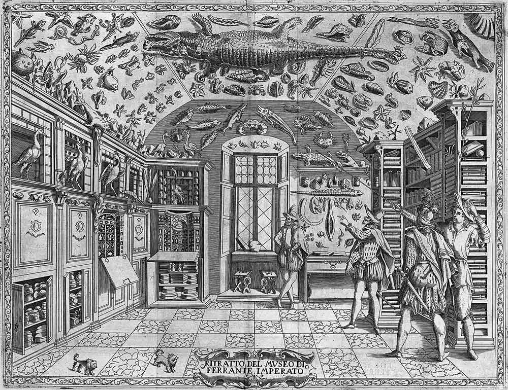 Также существуют сведения, что чучело похожего животного было выставлено в собрании известного натуралиста Ферранте Императо (Ferrante Imperato 1525?—1615?), создателя не просто коллекции диковин, а фактически первого в Европе (и в мире) настоящего музея. Во всяком случае, на гравюре в книге самого Императо «Dell’Historia Naturale» (Неаполь, 1599 год) оно точно присутствует — а это вообще-то первое в мире изображение музейной коллекции! К сожалению, именно по этой причине на нем лежит «печать эпохи»: тогда считалось вполне нормальным, что такие изображения могут делаться не с натуры, а с учетом хорошо известных читателю иллюстраций из авторитетных источников — того же Геснера, Хофнагеля (еще не Ньеремберга!)… В результате подробностей мы узнаем не больше, а, с учетом накопления искажений, меньше, чем у них.