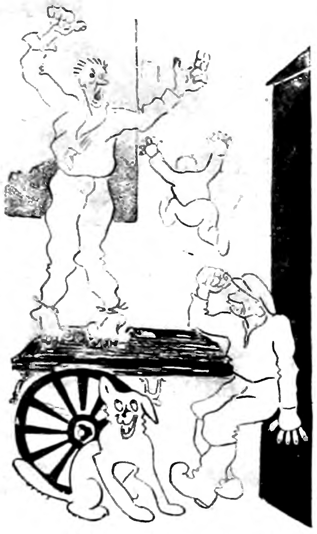 Увидя такое дело, Филамент Авдионович решил плюнуть на эту патентную историю. Сказано — сделано: поборов свое изобретательское самолюбие, он категорически плюнул. Облегчившись таким путем, он взялся за работу и, закончив ее сегодня, стал блестяще излагать теорию Радиокрысобоя с высоты телеги, во дворе. Он излагал бы еще очень долго, тем более что его единственный слушатель, Скап, смотрел на него умнеющими глазами и одобряюще вилял хвостом, но помешал сапожник: со свойственным ему отсутствием интуиции и чуткости он, в очевидно нетрезвом виде, подошел к телеге, на которой ораторствовал Филамент Авдионович, и, показав кулак, сказал: