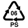 PS (ПС) — полистирол, очень дешёвый пластик. Из него делают одноразовую посуду, стаканчики для йогуртов и плавленых сырков, упаковку, игрушки, теплоизоляционные сэндвич-панели, детали для бытовой техники и многое другое. Потенциально опасен, поскольку в процессе горения выделяет стирол, который, кстати, входит в состав напалма.