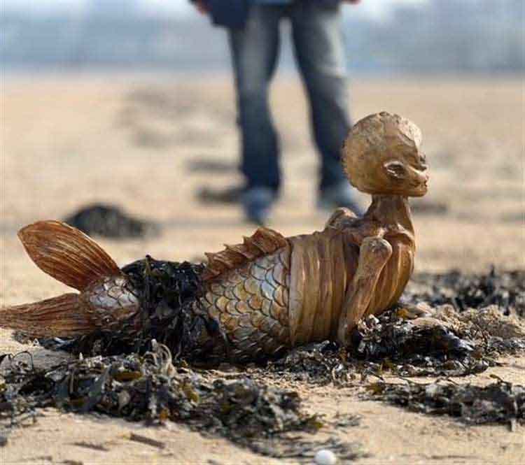 Ну, без вариантов: пластиковая фигура типажа, называемого «фиджийская русалка» (хотя, конечно, их делали не только на острове Фиджи). См. https://en.wikipedia.org/wiki/Fiji_mermaid. Раньше требовалось при помощи папье-маше совмещать специально обработанные в ходе мумификации трупики обезьяны и рыбы, сейчас делается упор на современные материалы и методы.