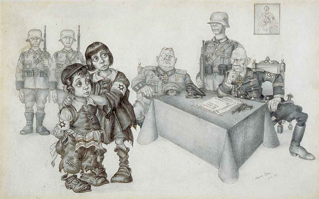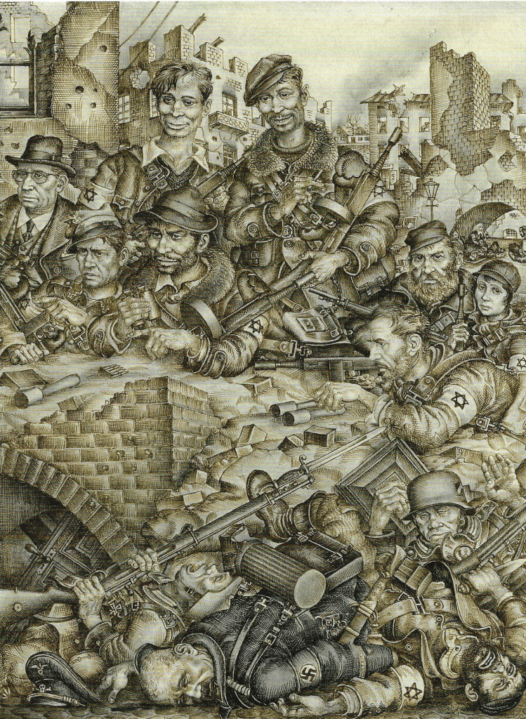 «Очередная атака отбита…» (1943): рисунок из цикла «Песни гетто». Сюжет посвящен восстанию Варшавского гетто…