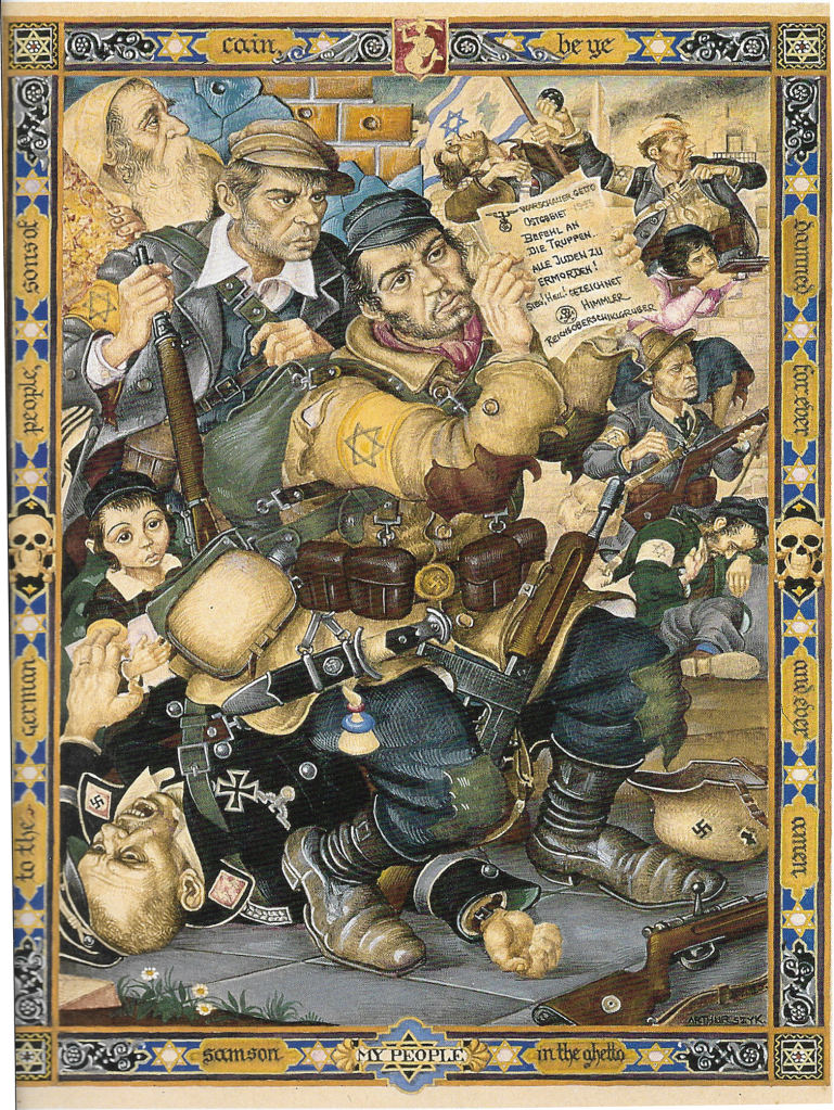 «Самсон в гетто» (1945). Бойцов Варшавского гетто уже два года как нет — но их пепел стучит в сердце Шика, порождая библейские ассоциации.