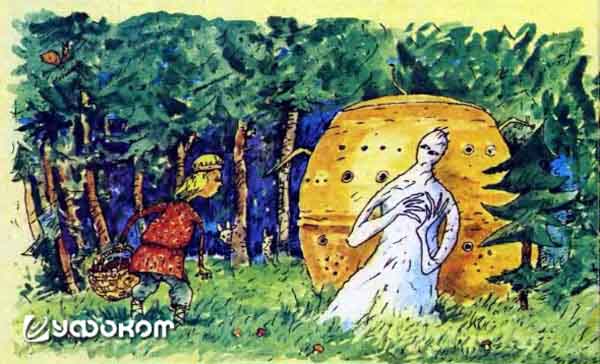 „…Будучи-де в малолетстве, ходил он, Яшка, в лес по ягоды, где явился ему неведомо какой человек Тимофей в одеянии бумажном и, взяв его, Яшку, посадил в великий медный котел, в который и сам он, Тимофей, с ним сел, и в том котле их вместе на небо неведомо кто подняли… Яшка у вышеописанного Тимофея в построенной деревянной избе жил полтора года, и за тое его жития время он, Тимофей, его, Яшку, в том же котле и на том же месте, где взял, с неба спустил и велел, чтобы он, Яшка, по-отяцки молиться приказал новокрещенцам…“ (Синодальный архив за 1752 год № 635/135; Известия общества в 1909 году, том XXV, вып. 5, раздел «Этнографические материалы»).