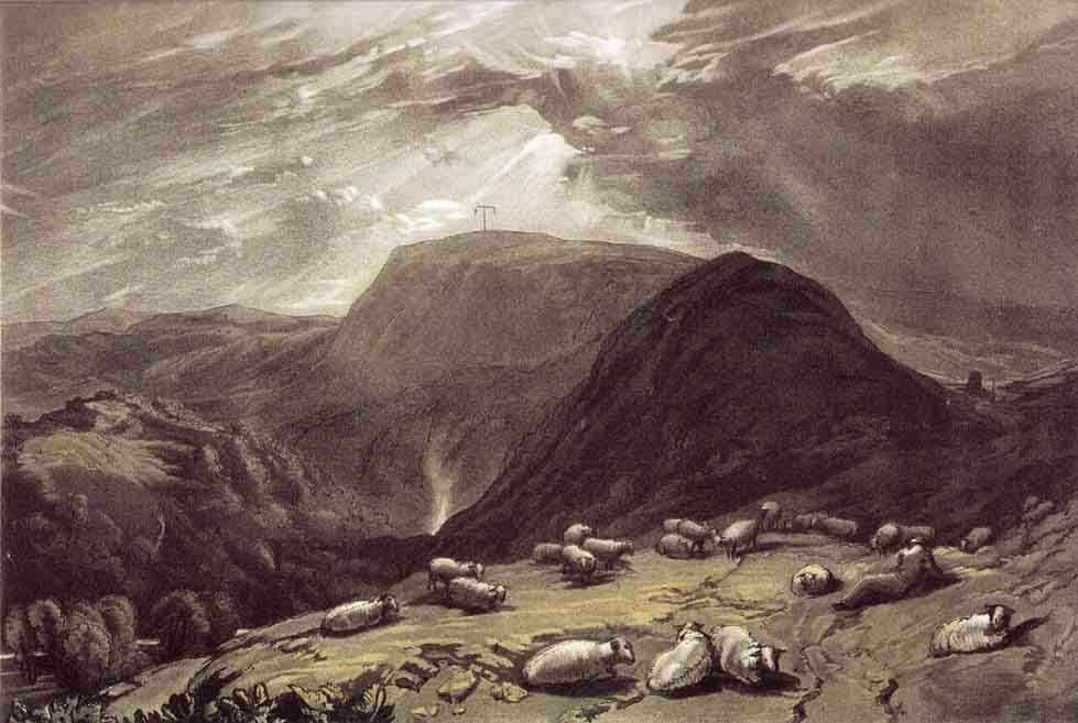 У Памятного креста на вершине Висельного холма уже толпились люди, а вокруг валялись яичная скорлупа и обрывки газет — явные следы недавних пикников. Моё внимание привлекли симпатичная леди и джентльмен, я мысленно окрестил их «молодожёнами». Вид, открывавшийся с холма, был так прекрасен — бескрайние волны зелёных лесов, долин и вздымающихся вершин, — что я совсем забыл о юных спутниках. Подойдя к самому краю обрыва, я сел, устремив взгляд на восток, и погрузился в созерцание.