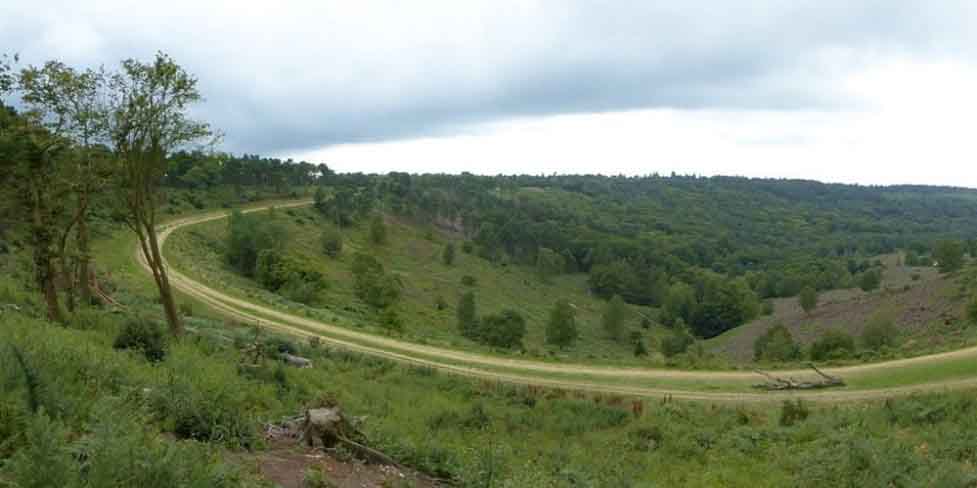 Когда я покинул «Королевские хижины» — трактир на вершине Хайндхеда, — дабы увидеть Дьяволову чашу и Висельный холм, запечатлённые Тёрнером в его «Liber Studiorum», то вышел на широкую прямую дорогу — новый путь между Лондоном и Портсмутом — и вскоре оказался на краю Чаши, где вдоволь смог насладиться её красотами. Туман, густой в Лондоне, когда я уезжал этим октябрьским утром, добрался даже до Хейзлмира, заполнив долины, так что вершины холмов Суррея вздымались из моря мглы, подобно островам. Яркое солнце, озарявшее высоты, смягчало и золотило бескрайние просторы холмов, долин и пустошей, простиравшихся до самого южного побережья. Склоны холма круто обрывались со всех сторон, лишь на северо-западе долина мягко спускалась на равнину. Летние краски, столь радующие глаз в солнечном сиянии, тускнели, уступая место осенней серости. Розовые и пурпурные цвета вереска сменились бурыми, скрывая угасающее тепло. Папоротник переливался блёкло-жёлтым янтарём, а бесчисленные травы и полевые цветы уже облачились в зимние одежды — цвета увядания.