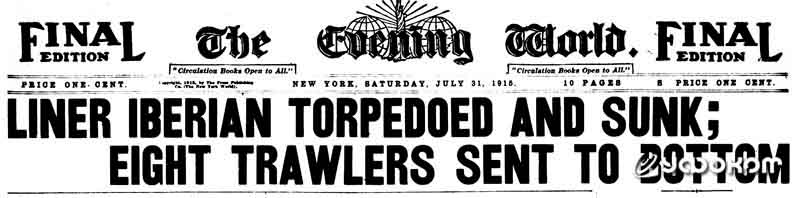 За гибелью «Iberian» внимательно следили не только немецкие подводники, но и его экипаж, с тоской провожая глазами тонущее судно. Оказавшись на берегу в Ирландии, они не стали молчать. В газетах Британии и США их рассказы были напечатаны под аршинными заголовками. Ни в одной из газет нет упоминаний о подводном взрыве и тем более о морском чудовище, вылетевшем из-под воды.