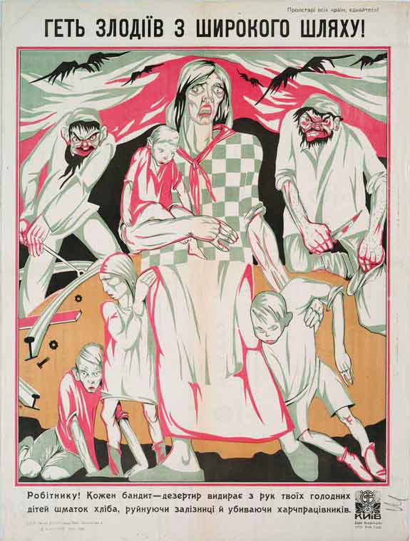 Тоже Украина. Плакат для современного взгляда выглядит крайне неполиткорректно: бандиты и дезертиры изображены как «враждебные мигранты».