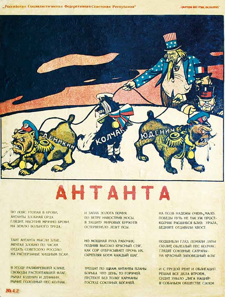 Так что начнем в нынешнем номере с творчества победителей. То есть с подборки советских плакатов против беляков и интервентов. В следующем выпуске продолжим ее же, а потом, ради справедливости, будет опубликована и подборка белогвардейских плакатов.