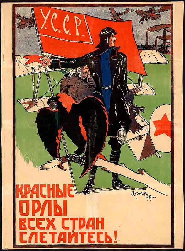 Опять-таки Украина, хотя без подписи этого и не понять; красные летчики заменяют пролетариев (тех, которые всех стран).