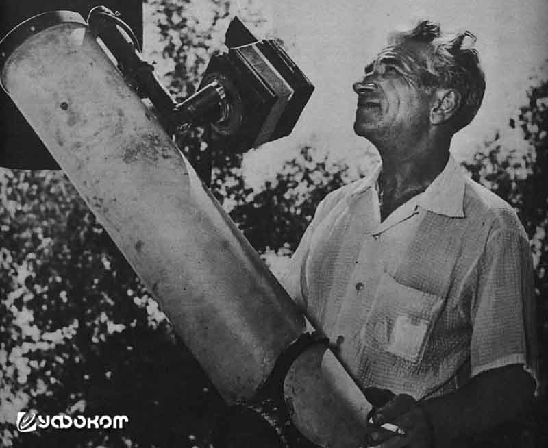 «Один из учеников подарил ему 6-дюймовый ньютоновский телескоп-рефлектор, и Адамский стал проводить много времени, изучая небо, — продолжает Шарлотта Блоджетт. — Он и его ученики сделали множество фотографий при помощи самодельных приспособлений к телескопу. В это время Адамский сделал первый снимок космического корабля, хотя в то время не знал, что это такое. Фотография была показана нескольким астрономам, но никто не смог ее опознать. Объект находился слишком далеко в космосе, чтобы можно было различить какие-то детали. Было высказано много предположений насчет этого снимка, но ни одно из них не было сколько-нибудь приемлемым.