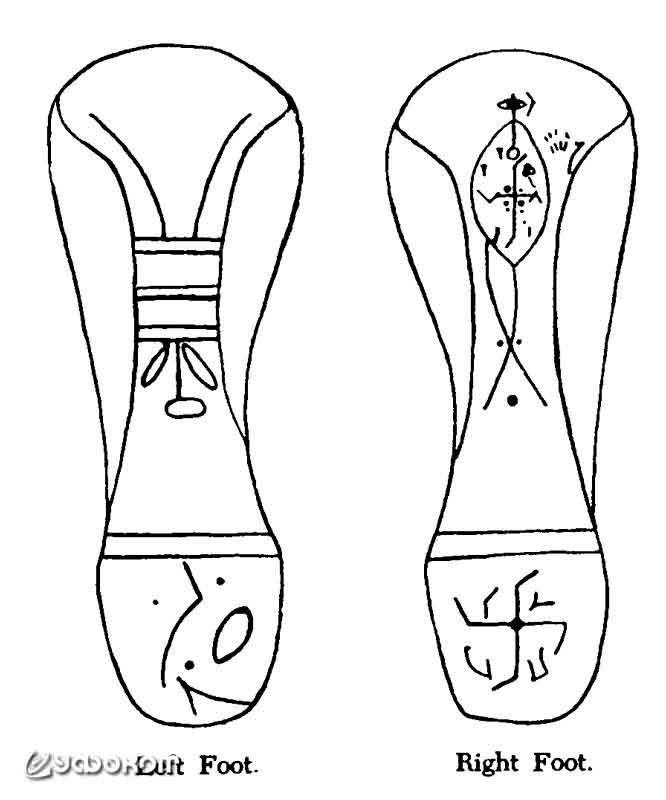 Пришелец не носил колец, часов или каких-либо украшений. Я не видел никаких признаков оружия и не чувствовал, что он вооружен. Его обувь темно-красного цвета была мягкой, хорошо пригнанной по ноге и, видимо, тоже сделанной из тканого материала, однако он отличался от материала костюма, больше напоминая кожу. Снаружи на ней были видны узкие полоски, где обувь расстегивалась, но никаких следов застежек я не заметил…» [5]
