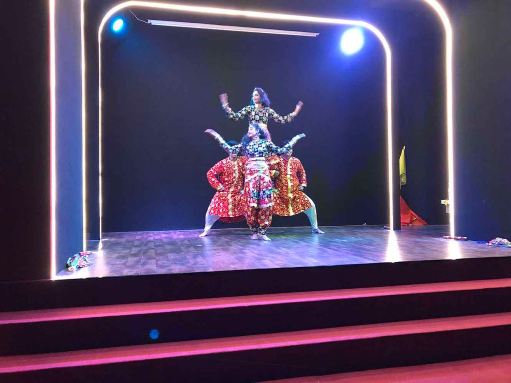 Потом нам показали небольшое театрализованное представление с песнями и танцами. А также дали возможность сфотографироваться на фоне стандартных болливудских декораций. Был интересный эпизод. С музыкальным и видеосопровождением произошла некая накладка, которую разрулила удачно оказавшаяся в нашей группе американская программистка.
