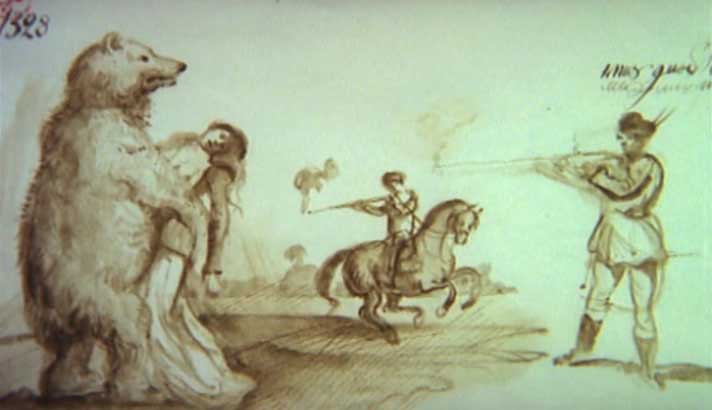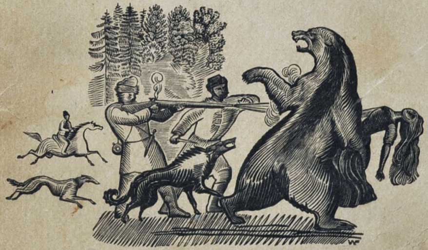 А может быть, и не совсем так. Перекличка с «медвежьим» эпизодом поэмы Мицкевича подчеркнута рядом мелких деталей (Мериме, конечно, читал ее перевод на французский, сделанный задолго до того, как он приступил к «Локису»), но вдобавок не просто усилена, а повернута какой-то жутковатой стороной. Точно ли рассказчик знает, что напавшее на графиню существо — медведь, будь то обычный зверь или оборотень? Уж не эвфемизм ли его медвежье обличье? Не скрывается ли за ним другой лесной гигант — тот, тень которого стояла перед глазами и Мицкевича, и Глинки? Швыряющий камни; замахивающийся дубиной; способный, попав в человеческий плен, приучиться вращать колодезный ворот или орудовать кузнечным молотом. И, при всем своем могуществе, бессильный против пули…
