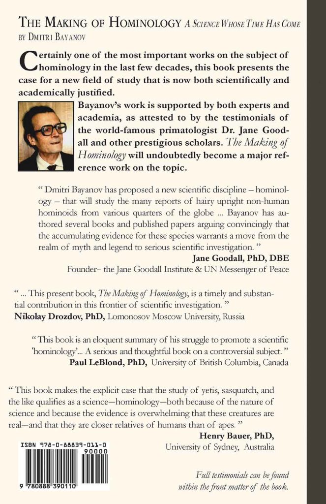 Серьёзное изучение вопроса о «снежном человека» началось с выхода ломающей стереотипы книги профессора Бориса Поршнева «Современное состояние вопроса о реликтовых гоминоидах» (1963). Профессор отметил в ней зарождение новой науки о неклассифицированных высших двуногих приматах, которая позже получила название гоминологии. Будучи студентом МГУ им. Ломоносова, я не раз слушал лекции профессора Поршнева об этой проблеме и даже получил в подарок от него экземпляр знаменитой книги. Он инициировал изучение вопроса о реликтовых гоминоидах комиссией Академии Наук СССР, продолженное группой энтузиастов под руководством главного хранителя Дарвиновского музея Петра Петровича Смолина, а затем Дмитрия Баянова. Написанная им книга (английский вариант в соавторстве с Кристофером Мёрфи) является своевременным и весомым вкладом в исследование, которое происходит на переднем рубеже науки.
