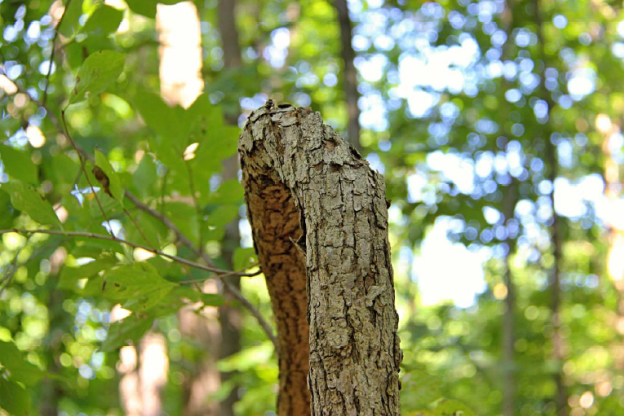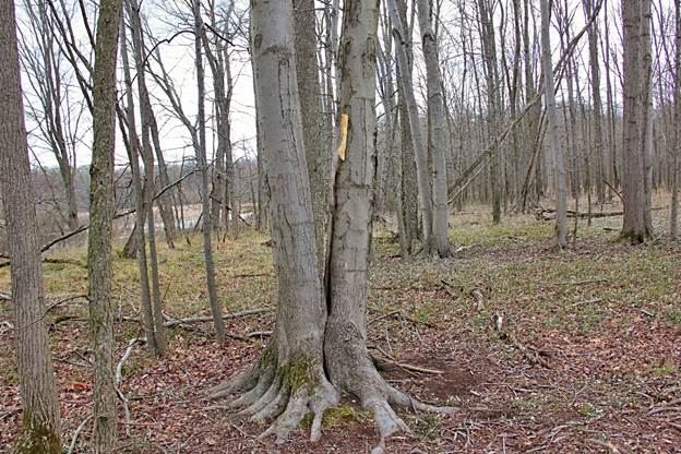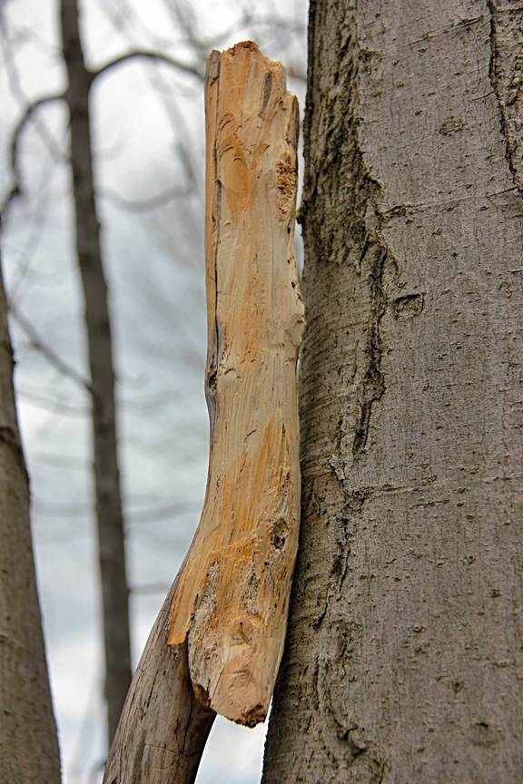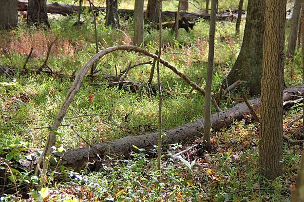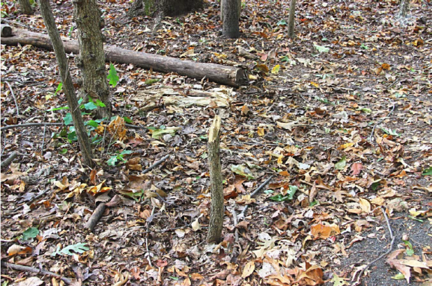 Предположение, что это могли сделать люди, было отвергнуто сразу. Чисто теоретически в вечерне-ночное время совершить подобное могли только сами служащие парка (хотя на самом деле по ночам они не работают). Но дело в том, что парк находится под юрисдикцией правительства штата Вирджиния, и именно правительство несет юридическую ответственность за безопасность посетителей заповедника. Однако ответственность эта распространяется только на официальные тропы. Если же с посетителем что-то случается вне тропы, за его безопасность никто не отвечает. Поэтому именно на тропе работника парка никогда подобные острые пеньки не оставляют. Если парковые служащие убирают какое-то дерево в целях безопасности, то оставляют после себя пеньки вот такого типа (фото 41).