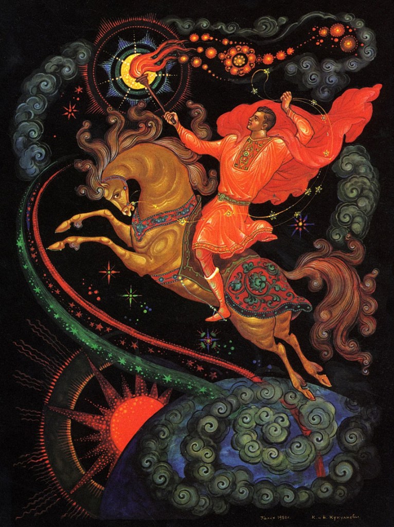 По-видимому, в обстоятельствах создания самого фантастического из циклов Палеха кроются какие-то загадки. Что ж, от этого сам он не делается менее фантастическим.