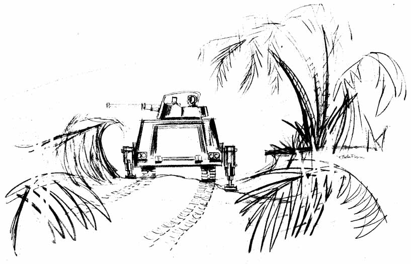 — Двуногая. Общий вес 6 тонн. Две опоры имеют стопу площадью 1 м2. Используется как легкая бронемашина или столь же легкий транспорт. С учетом приключенческого жанра это, скорее всего, транспорт полицейских и пиратов.