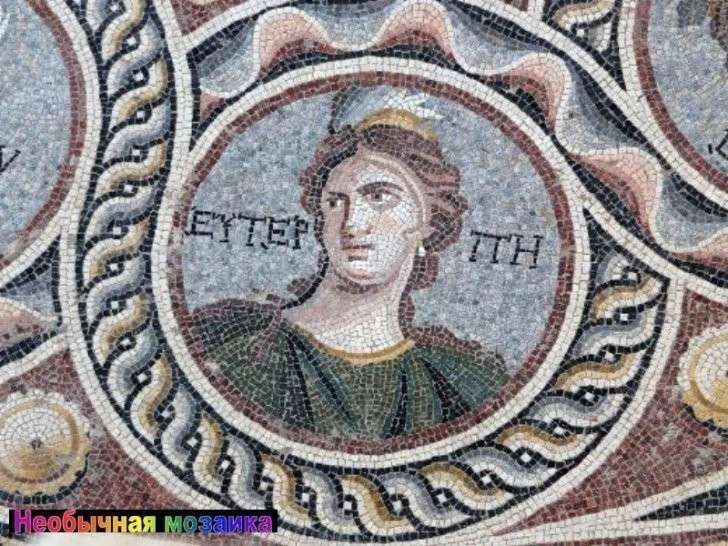 Территория нынешней Турции когда-то, разумеется, входила в Римскую империю, но в ту ее часть, которая на определенном этапе стала Восточной Римской империей. То есть Византией. Со столицей в Константинополе. А это — мозаики из византийского городка Зевгмы, причем отнюдь не новонайденные: они перенесены в музей в самом начале нашего века. И хорошо изучены. Датируются эти мозаики, собственно, еще довизантийским периодом: эллинистической эпохой. Но надписи на них из-за этого отнюдь не перестают быть греческими.