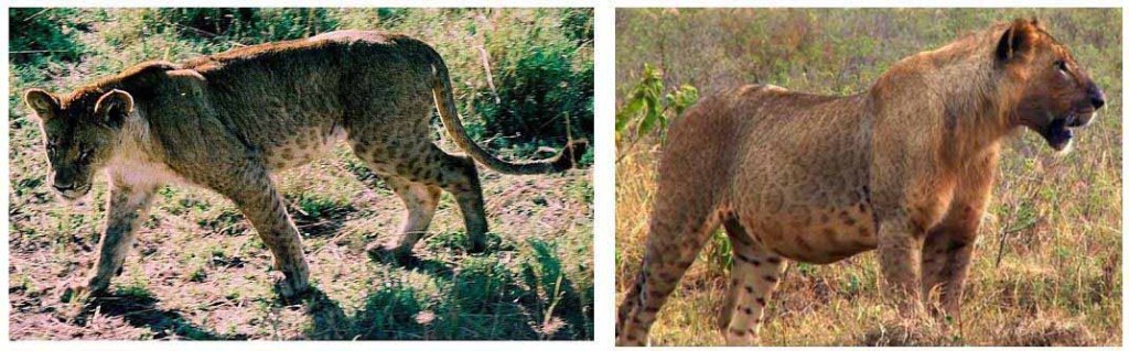 Но с какого-то времени, а именно — с начала ХХ века, европейцы стали рассказывать друг другу о конкретно пятнистых львах, включая и взрослых зверей, а не только о львятах. В 1931 году были добыты даже две львиные шкуры, которые принадлежали как раз половозрелым львам, но не львятам, а именно пятнистой раскраски. Это как?