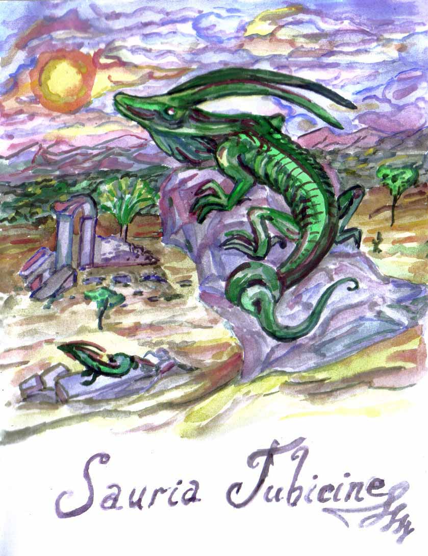 Совсем иное впечатление Sauria Tubicine производила на путешественников, которые видели ее впервые, и тех, кто узнавал о ее существовании из рассказов очевидцев. В средневековых манускриптах эта рептилия упоминается как Regina Infernata, прародительница огнедышащих драконов, изгнанная из преисподней за какую-то невинную шалость. Рогам чудовища приписывалась мистическая сила. Нередко чернокнижникам Европы и Индии продавали рога африканских антилоп, выдавая их за желанный элемент адской ящерицы.