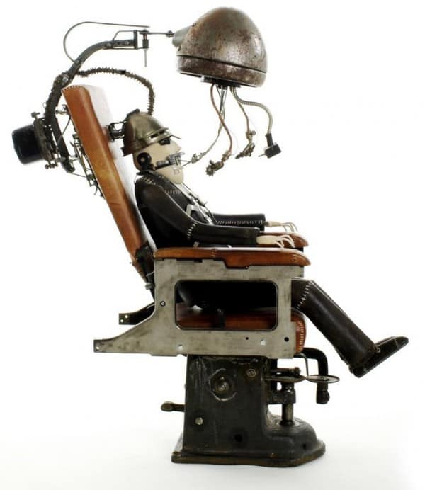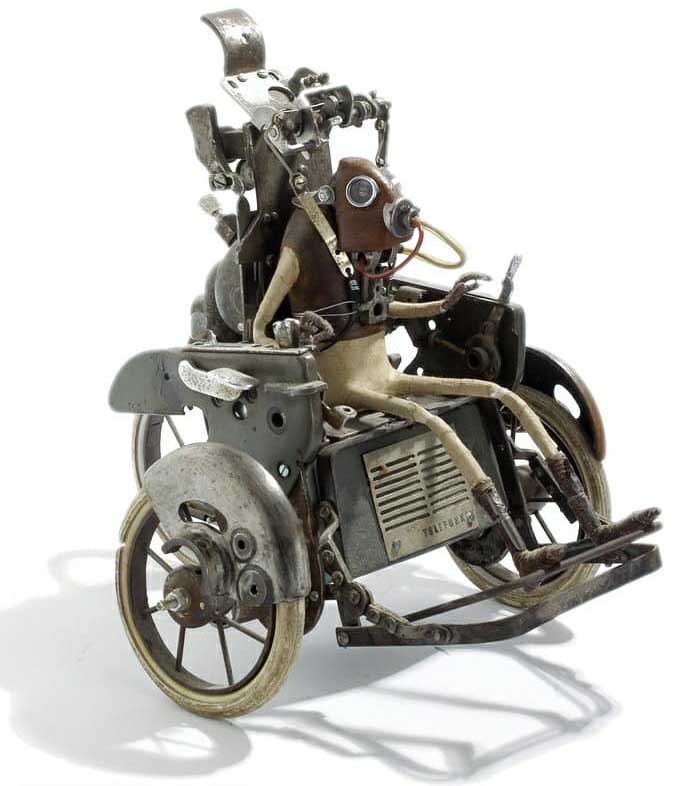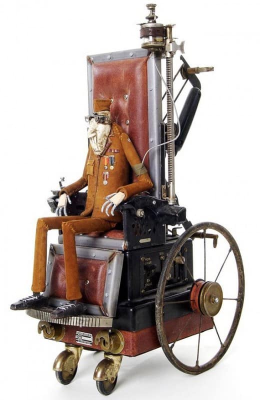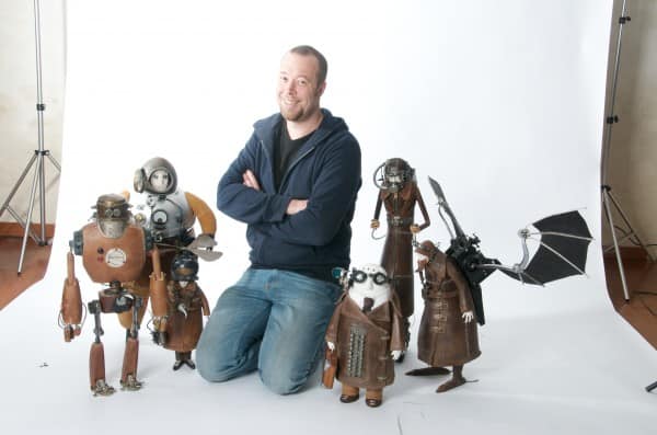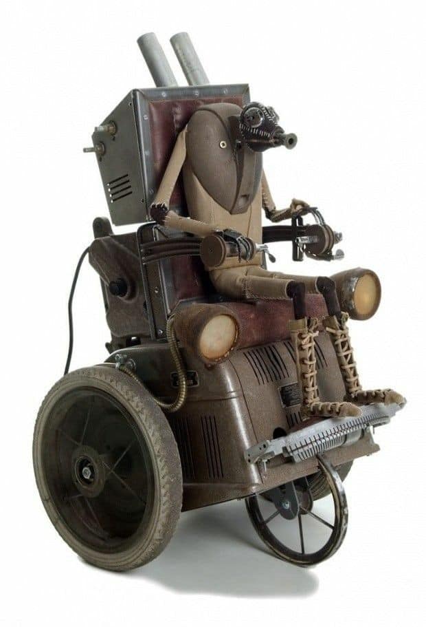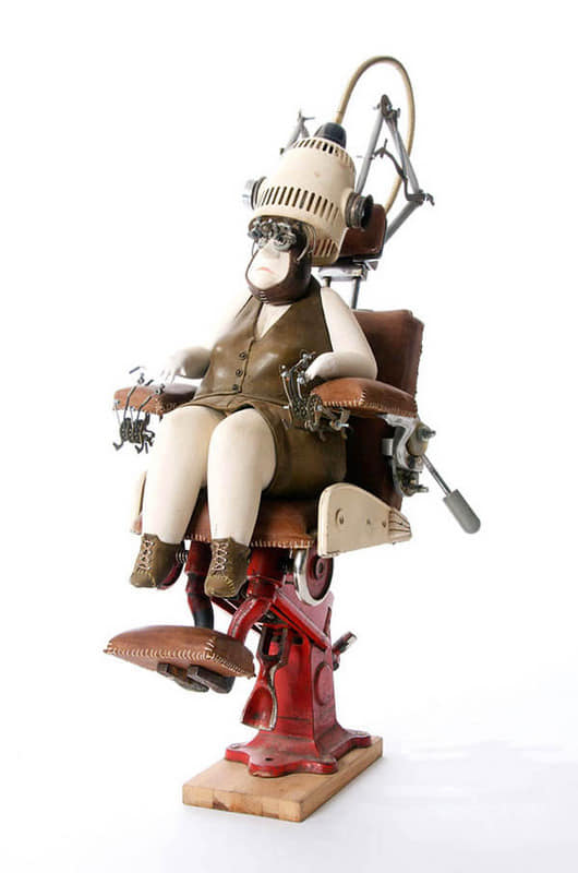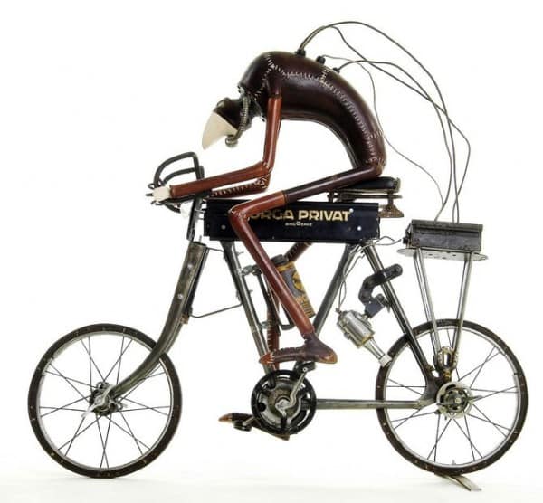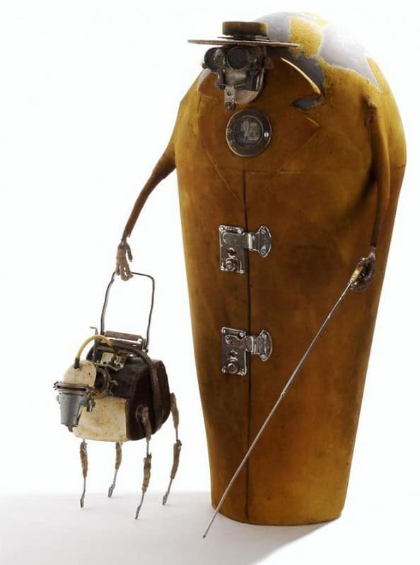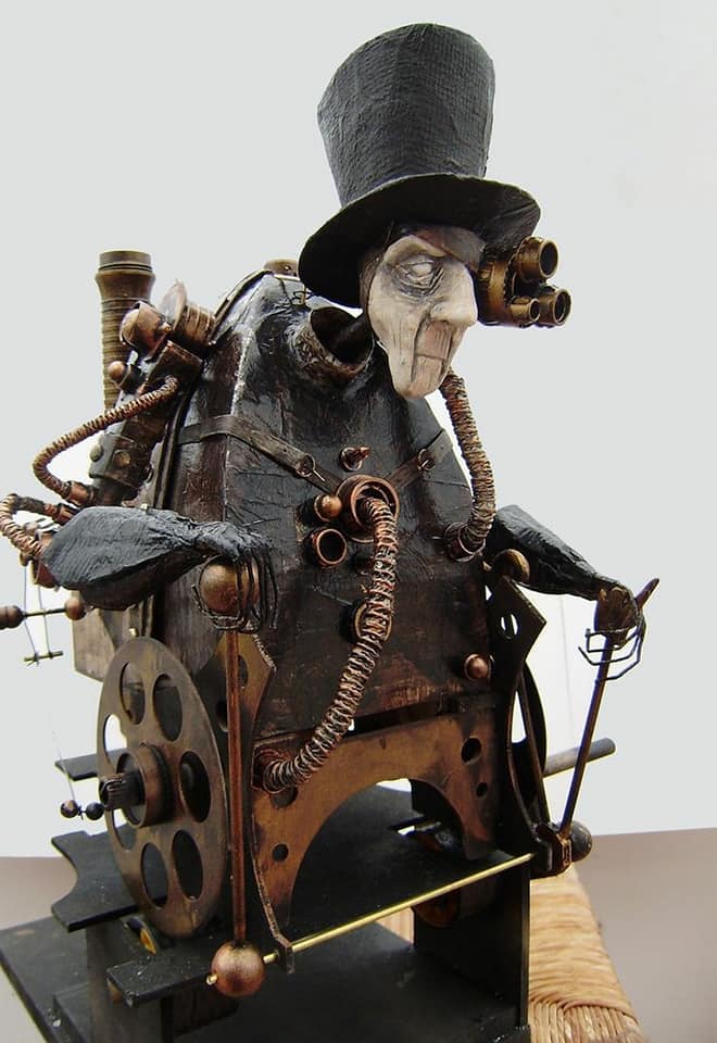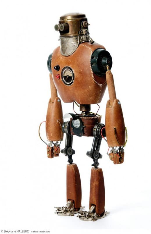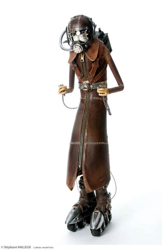 Автор этих скульптур Стефан Халлё (Stephane Halleux) живет в пригороде столицы Бельгии и работает в антикварной лавке. Художник по образованию, Стефан работал аниматором в люксембургской студии, на досуге рисуя шаржи и карикатуры. И тут его захватила страсть к созданию стимпанковских скульптур, которая и привела его в антикварную лавку и сделала весьма популярным в мире поклонников стимпанка. Скульптуры Стефана Халлё ценятся за их уникальный стиль, своеобразный юмор и детальность.