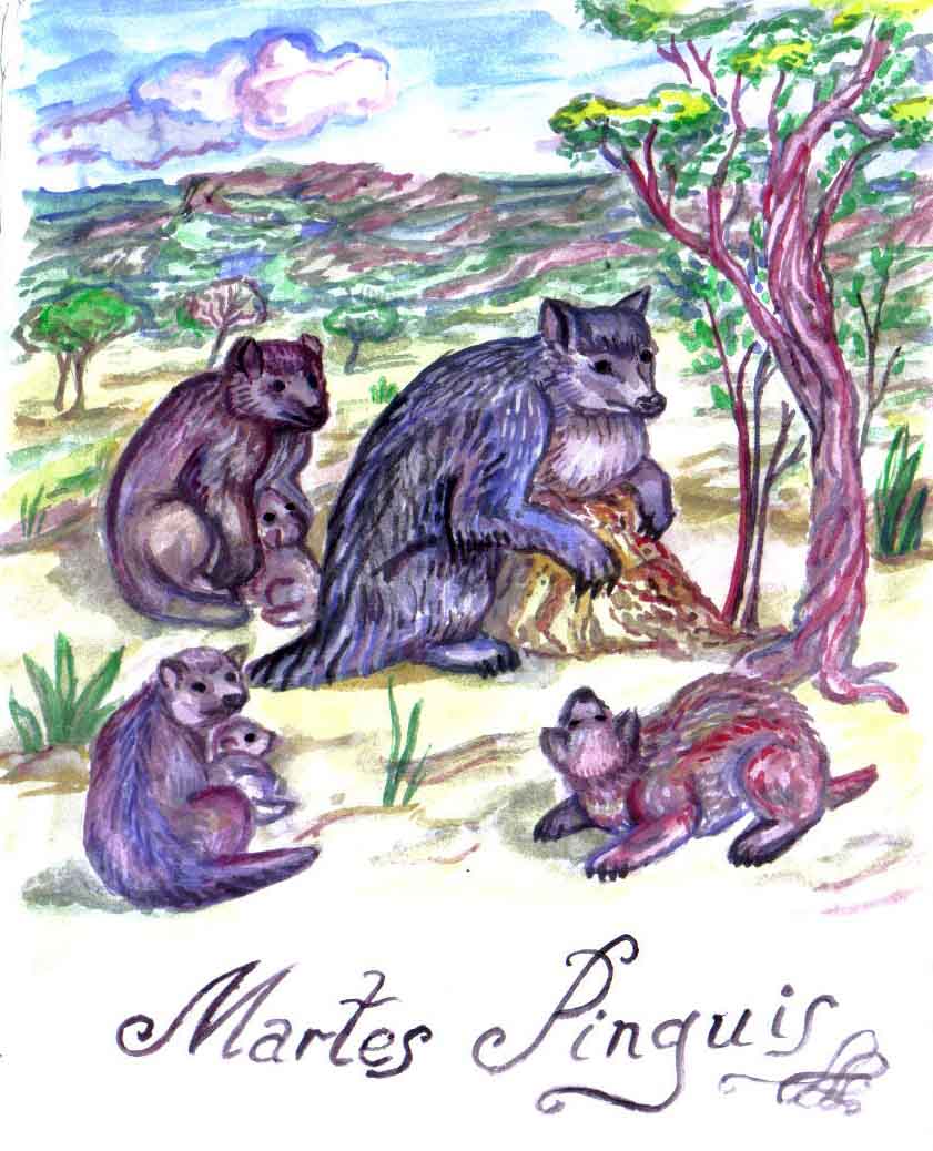 Когда первые люди пришли в Австралию, Martes Pinguis уже обитал там. Аборигены были равнодушны к этому зверьку из-за его неприятного запаха. В большинстве местных наречий это живое существо именуют просто «животное». Интерес к нему появился вместе с европейскими поселенцами. Преисполненные восторга описания Австралии Джона Оксли достигали Старого Света, и все больше натуралистов хотели там побывать. Именно они дали виду название Martes Pinguis и сделали любопытные наблюдения за его поведением в дикой природе.