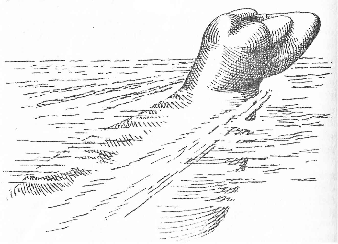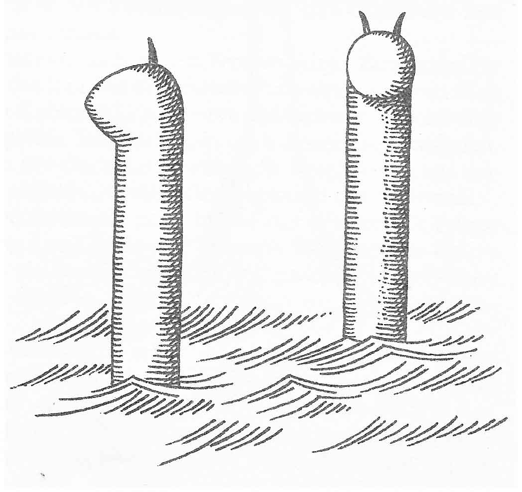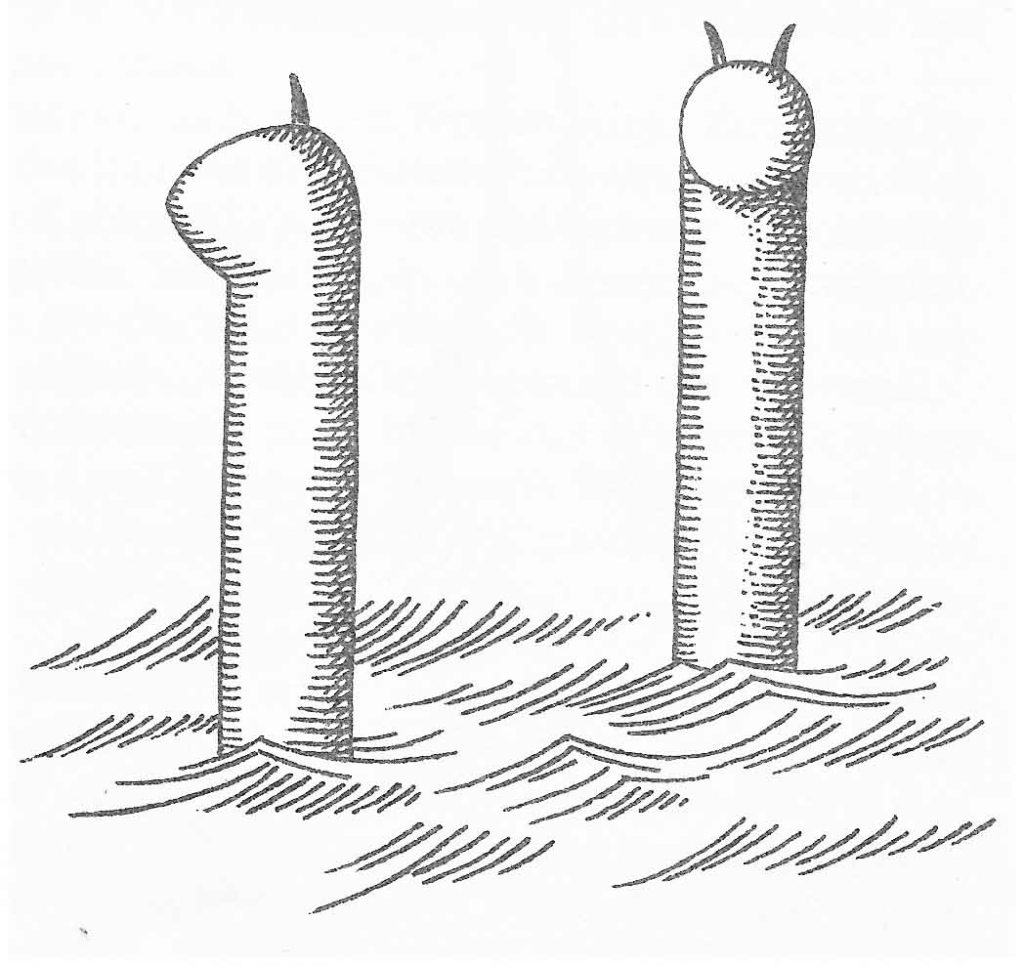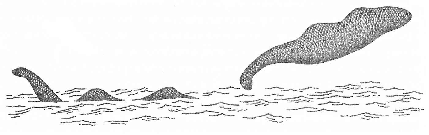 У супругов был хороший обзор: они находились на возвышенном побережье примерно в 200 метрах от морского чудовища (если его правильно так называть). Их набросок, конечно, очень приблизителен, так что нам остается только гадать, имеют ли отношения эти «выпуклости» к «рожкам улитки» в описании Артура Рострона. О длинной «перископно» торчащей шее, во всяком случае, речь не шла.