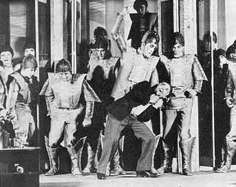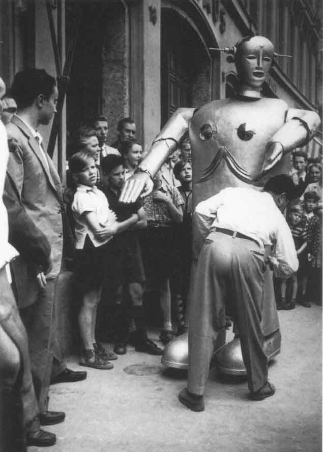 Всем известно, что термин «робот» впервые появляется в пьесе Карела Чапека «R.U.R.» («Rossum’s Universal Robots»), также всем известно, что роботы там скорее биологические — а вот как это название перешло на разумные или хотя бы подвижные механизмы, известно гораздо менее. Написана пьеса была в 1920 году, премьера ее в Праге состоялась в 1921, перевод на основные европейские языки — в 1923. После чего «R.U.R.» стремительно обрел международную известность, следующие пять лет он ставился по всему миру… а вот «механических людей» в эти годы роботами почему-то никто не именует. Даже знаменитую женщину-андроида (механическую, хотя и в телесной «суперобложке»!) из фильма «Метрополис», вышедшего в 1927 году, никогда так не называли, хотя сюжетные переклички с «R.U.R.» там очевидны. Зато ближе к концу 1920-х годов наметился обратный процесс: в постановках «R.U.R.» актерам-«роботам» начинают придавать черты механических андроидов!