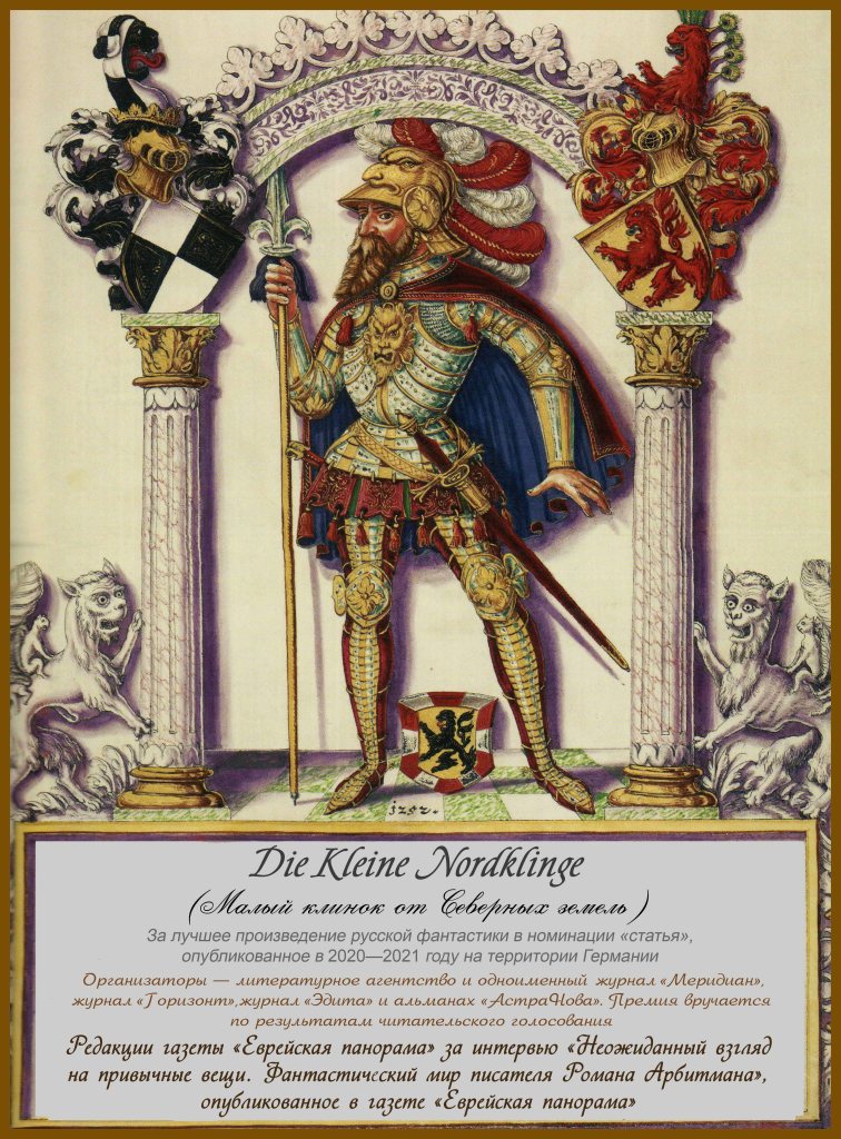 Для тех, кто забыл или не знал: название премии «Nordklinge» означает в данном случае «Клинок от Северных земель». Ничего нордического, просто официальный адрес нашего издания — Ганновер, столица федеральной земли Нижняя Саксония; а это один из северных субъектов федерации ФРГ, и мнения читателей, на основе которых ежегодно присуждается премия, нам удается собрать непосредственно в Нижней Саксонии и, при помощи коллег по интересам, в ряде близлежащих земель. Коллеги и единомышленники, без помощи которых нам бы не удалось обойтись, — это дружественные русскоязычные издания, культурные центры и литературные клубы в различных городах. К сожалению, список их непостоянен, он меняется год из года, а в карантинные годы начал ощутимо сокращаться…