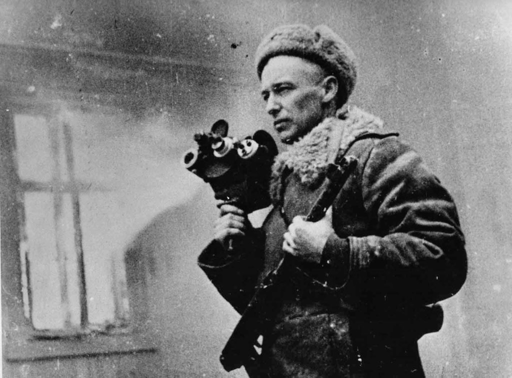 Моё оружие — киноаппарат и перо советского журналиста — также метко разит проклятых фашистов.