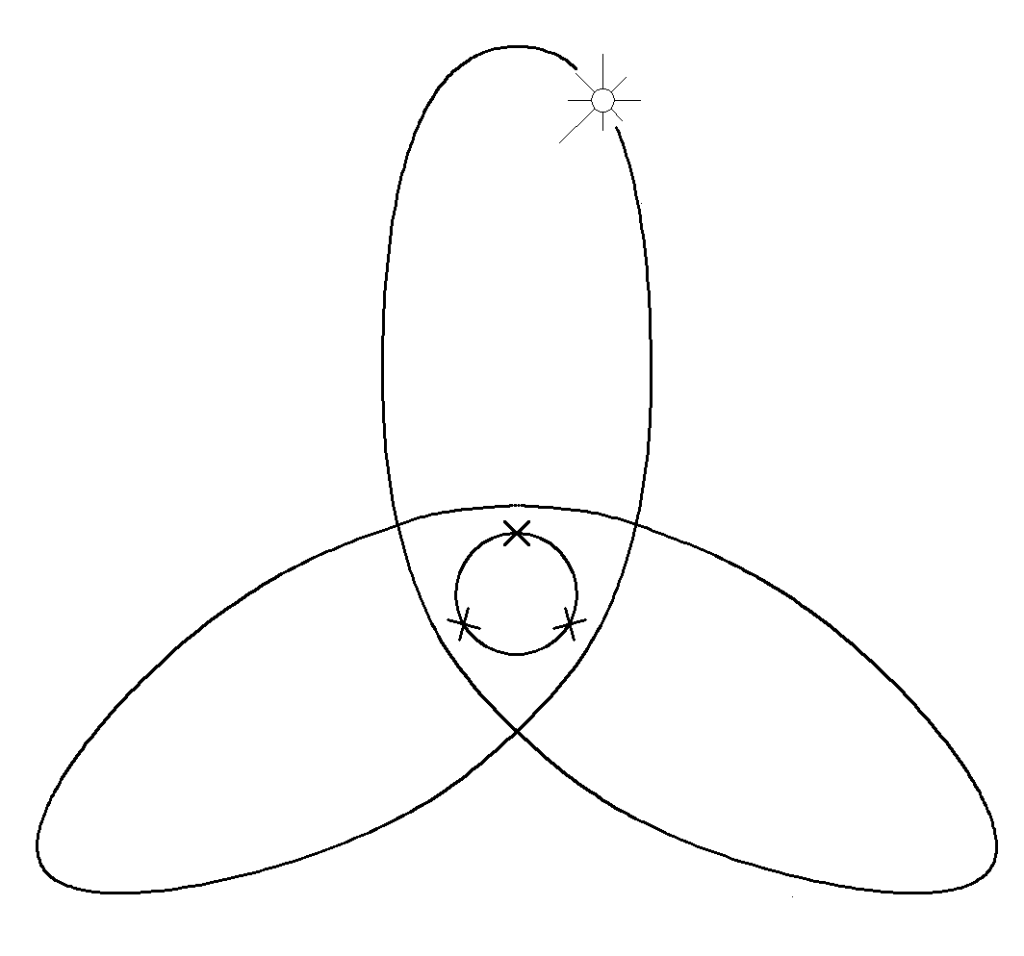 На помощь опять приходит рисунок: замкнутая кривая о трёх лепестках и кружок посередине. На кружке под каждым из лепестков отец ставит большой крестик.