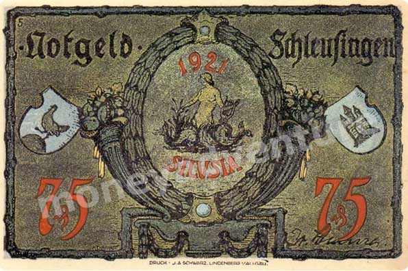В то время как коллекционных и памятных монет в честь русалок, никс, нимф и ундин существуют многие десятки, на бумажных денежных знаках их образы крайне редки. Мало того, в основном водные девы встречаются на германских денежных суррогатах (то есть заменителях платежных средств) 20-х годов прошлого века, на так называемых нотгельдах.