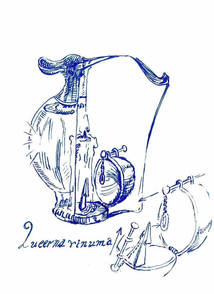 Эту смешную историю можно найти в письме конца XVI века, адресованном английскому флотоводцу Ричарду Хокинсу. Получив от отца адмирала наследство, включавшее как обучение морскому делу, так и капитал, этот аристократ приобрел судно для своих будущих экспедиций в Новый Свет. Планируя длительное и небезопасное путешествие, Хокинс позаботился об оснащении галеона по последнему слову техники. Узнав о том, что несколько веков назад итальянец придумал механический подсвечник, обеспечивающий защиту от пожара, флотоводец захотел добыть изображение Lucerna vinuma. Товарищ пересказал ему старинную историю и не советовал искать лампу. На то были причины.