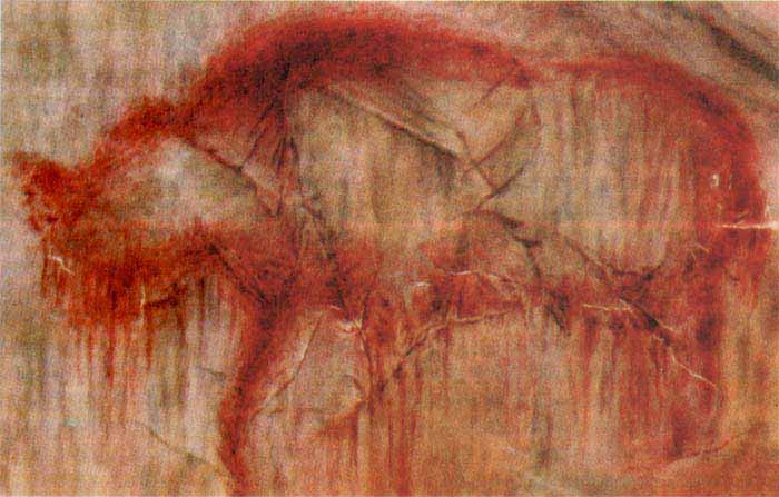 В пещере Руффиньяк — все наоборот. Впрочем, там для многих рисунков характерна утрированная тяжеловесность (расположенный поодаль двурогий шерстистый носорог тоже брюхом едва ли не по земле пресмыкается на манер бегемота).