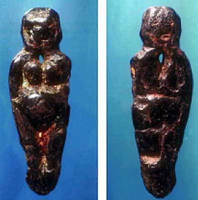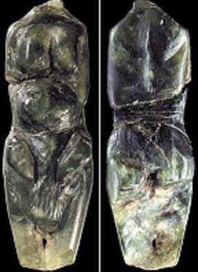 Изготовленная из черноватого с зеленоватыми оттенками хлорита, статуэтка имеет высоту 29 мм и возраст 25 тыс. лет.
