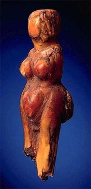 Венера в красной охре, она же Охристая Дама (Dame ocree), — это женская статуэтка высотой 7,52 см, изготовленная из кости мамонта (или все-таки тоже слона?). Овальное лицо не имеет выраженных черт, а голова и туловище изначально были покрыты очень толстым слоем красной охры.